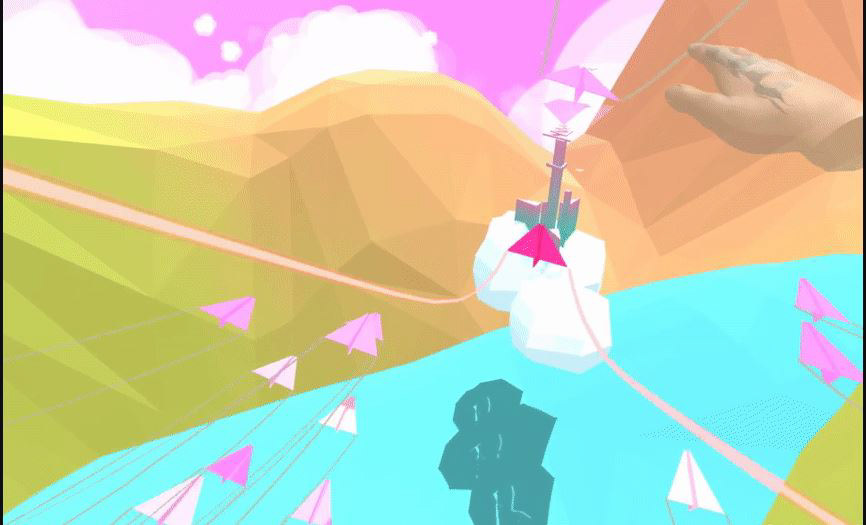 Paper Planes was a Virtual Reality experience designed for the Oculus Rift in which guests use their hand to intuitively guide a paper plane through an immersive virtual world. Paper Planes incorporated level design that allows the illusion of freedom and choice by the guest, while passively influencing them towards a set of predetermined goals.